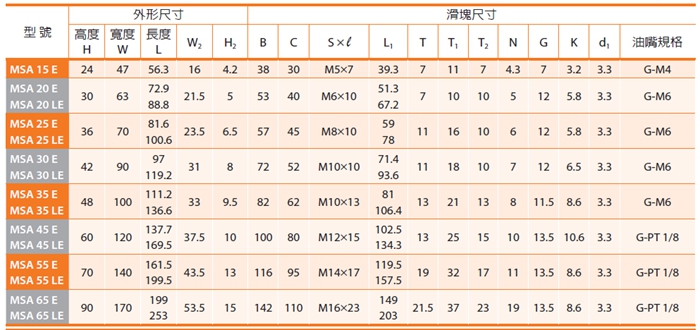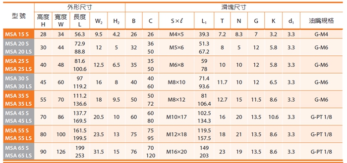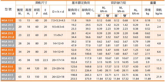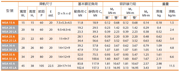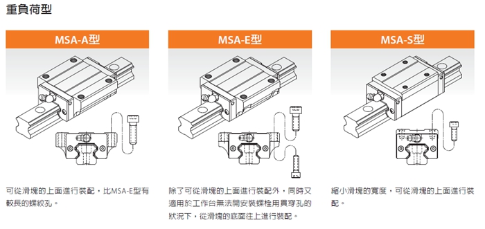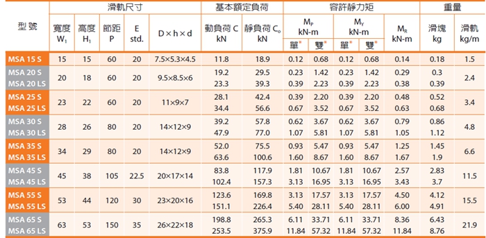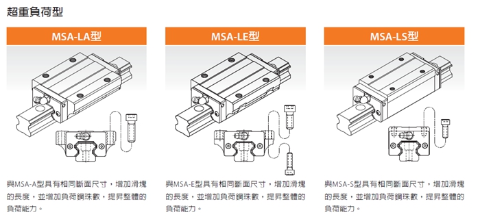 PMI銀泰MSA系列直線導(dǎo)軌采用4列圓弧接觸式及45°接觸角的鋼珠列設(shè)計(jì),提供徑向、反徑向及橫方向四方向的相同額定負(fù)荷能力,無(wú)論X、Y、Z等軸的各種安裝方式都可以使用,并且可在維持低摩擦阻力情況下均勻的施以預(yù)壓,增強(qiáng)四個(gè)受力方向的剛性,特別適合高精度與高負(fù)荷的運(yùn)動(dòng)方式。