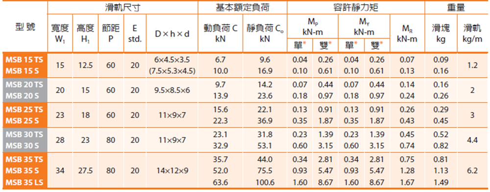 銀泰直線導(dǎo)軌MSB30TS特點(diǎn):