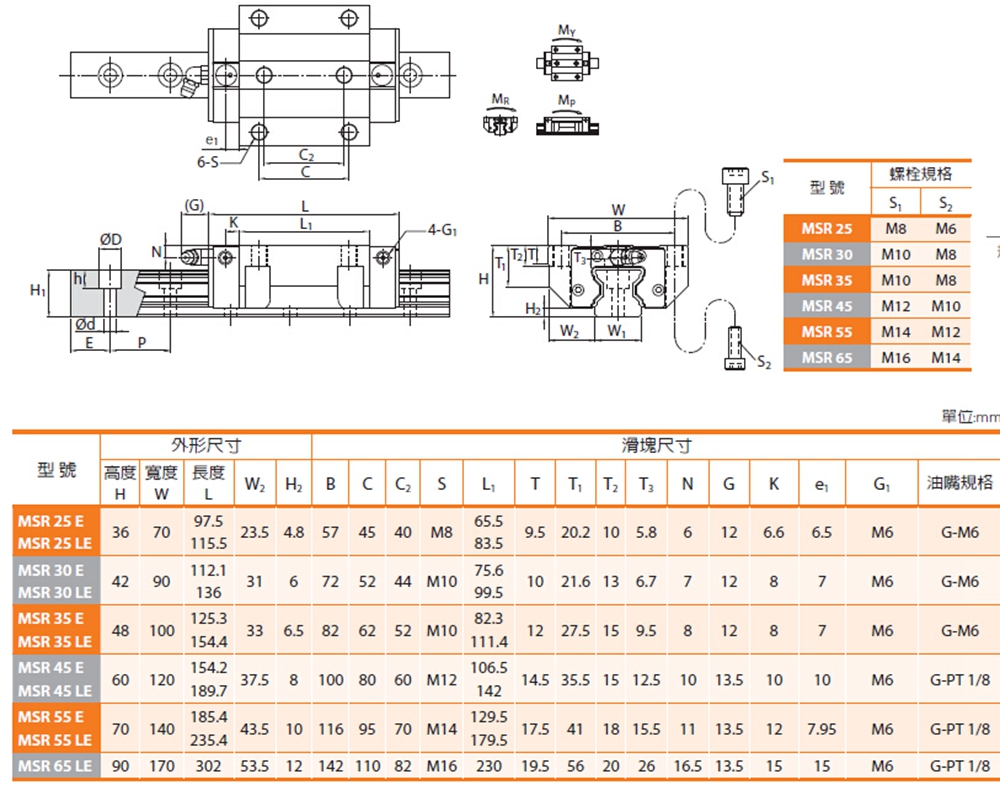 MSR導(dǎo)軌安裝型式