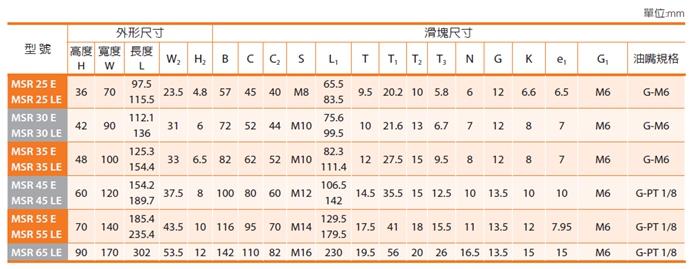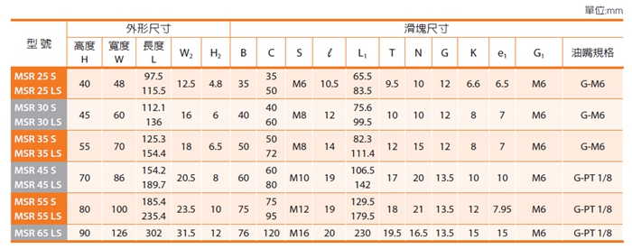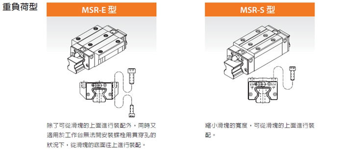 優(yōu)勢特點:PMI銀泰MSR系列滾柱型直線導軌由于使用滾柱滾動體取代一般的鋼珠滾動體,因此在相同尺寸的直線導軌上可提供更高的剛性與負載能力,特別適用于講求高精度、高負載與高剛性的設備需求。