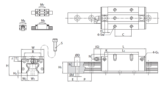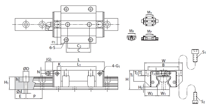 滾柱型系列MSR直線導軌透過滾柱滾動體與滑塊及導軌的線接觸受力方式,相較于一般鋼珠型直線導軌的點接觸模式,在承受相同負載時提供更低的彈性變形量,相同外徑條件下提供更高的負載能力,其高剛性、高負載的優(yōu)良特性,更能滿足重負荷加工的高精度應用。