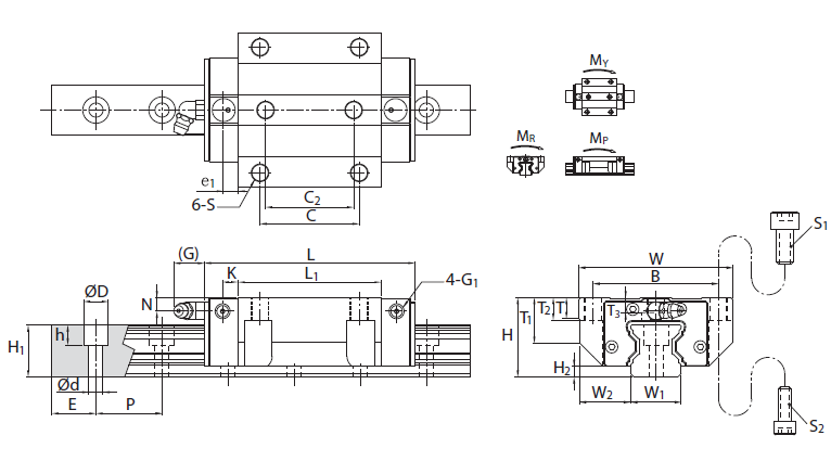 | MSR25LE | 36 | 70 | 115.5 | 23.5 | 4.8 | 57 | 45 | 40 | M8 | 83.5 | 9.5 | 20.2 | 10 | 5.8 | 6 | 12 | 6.6 | 6.5 | M6 | G-M6 | ||||||