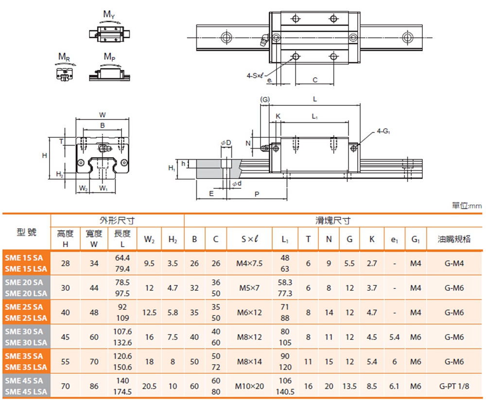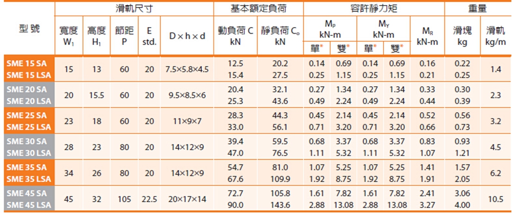銀泰線性導(dǎo)軌SME15SA特點(diǎn):