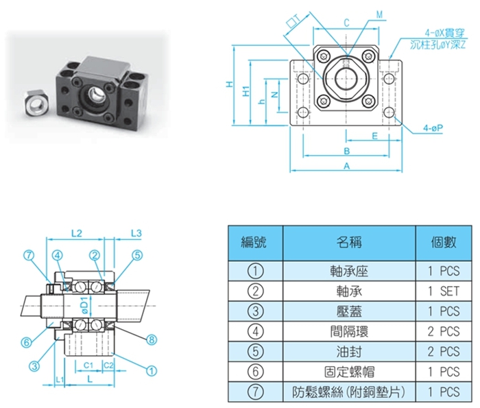 滾動PMI絲杠軸承座一般由內(nèi)圈、外圈、滾動體和保持架組成,其中內(nèi)圈的作用是與軸相配合,并與軸 一起旋轉(zhuǎn),外圈作用是與軸承座相配合,起支撐作用,滾動體是借助于保持架均勻的將滾動 體分布在內(nèi)圈和外圈之間,其形狀大小和數(shù)量直接影響著滾動軸承的使用性能和壽命,保持 架能使?jié)L動體均勻分布,防止?jié)L動體脫落,引導(dǎo)滾動體旋轉(zhuǎn)起潤滑作用。