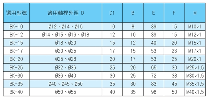 BK10 BK12 BK15 BK17 BK20 BK25 BK30 BK35 BK40
