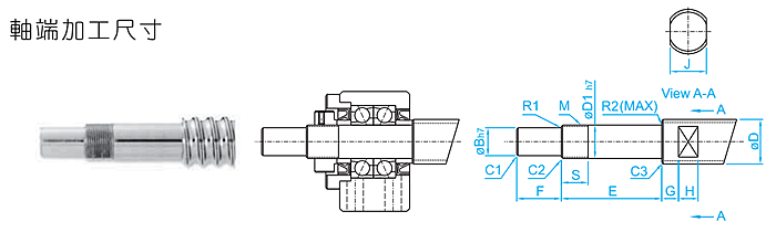 | 型號 | 適用軸桿外徑 | D1 | B | E | F | M | S | J | G | H | 倒角 | 圓角半徑 | H1 | H2 | |||||||