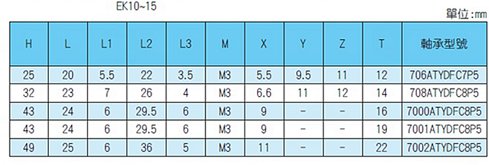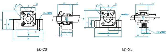 優(yōu)勢特點:絲桿支撐座EK系列裝有為超小型滾珠螺桿所開發(fā)的接觸角45°的超小型角接觸球軸承,能獲得高剛性、高精度的穩(wěn)定的回轉(zhuǎn)性能。