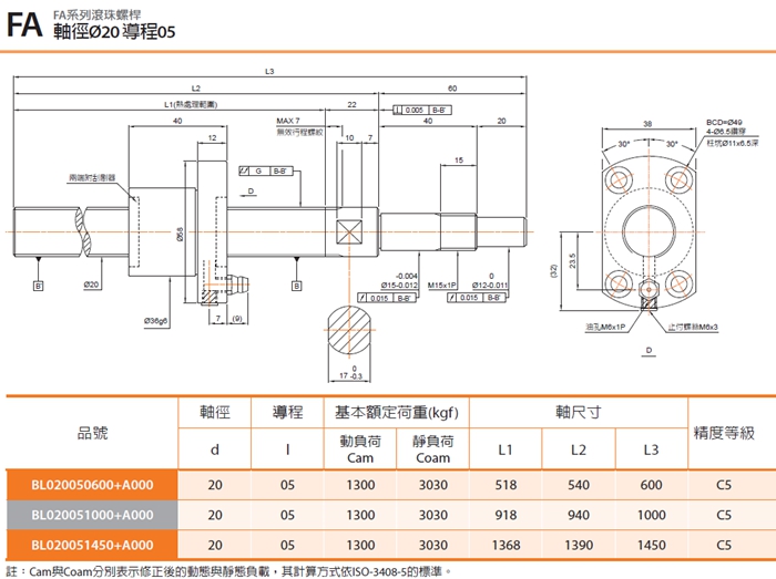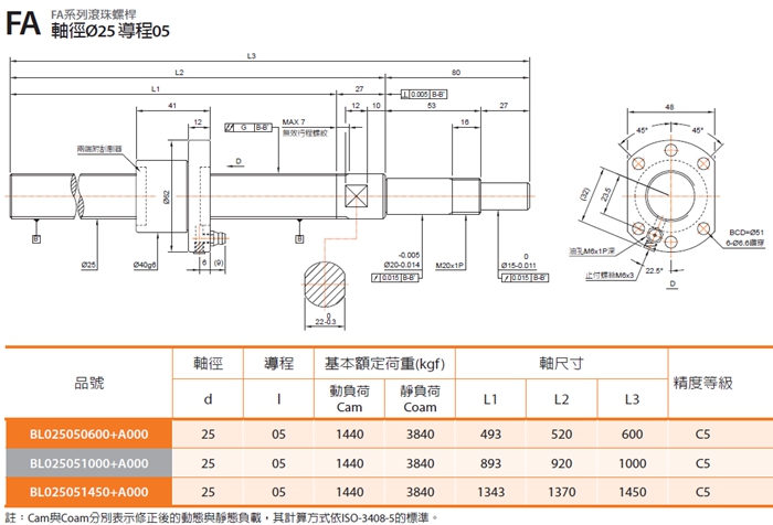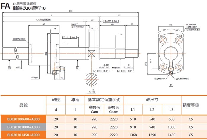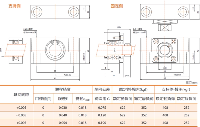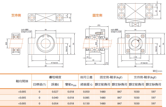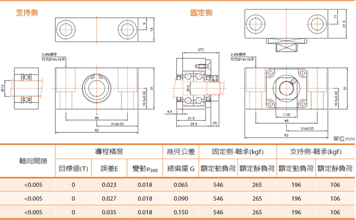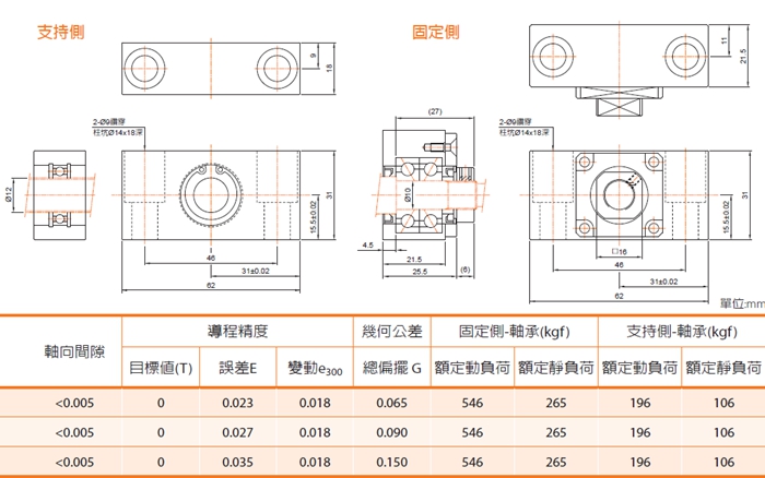 精度等級C5和5μm以下間隙作設定,大大的降低了使用成本和交期。