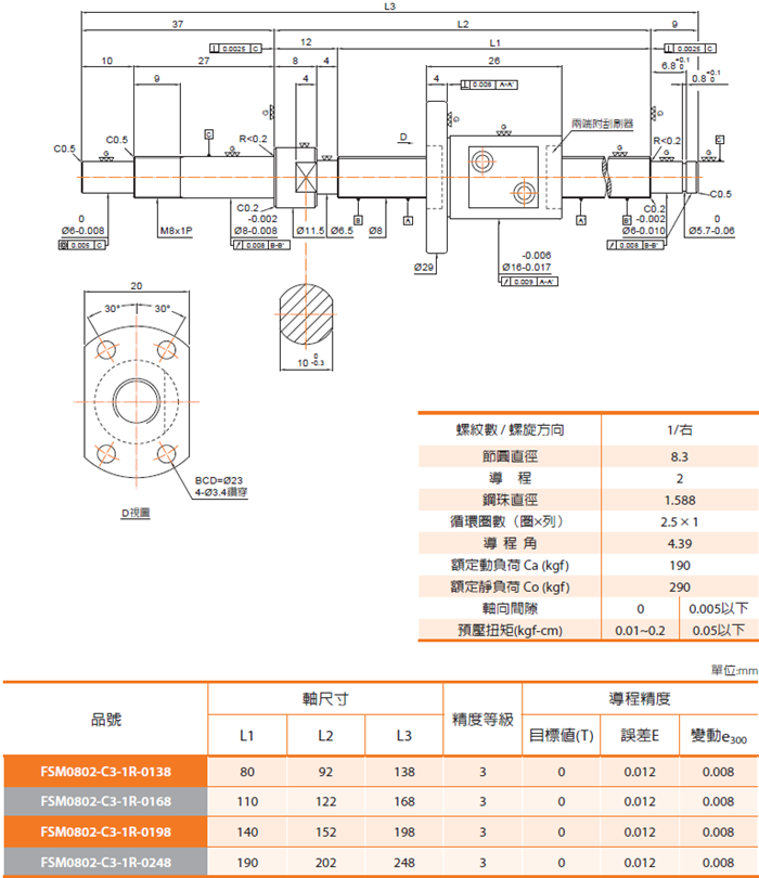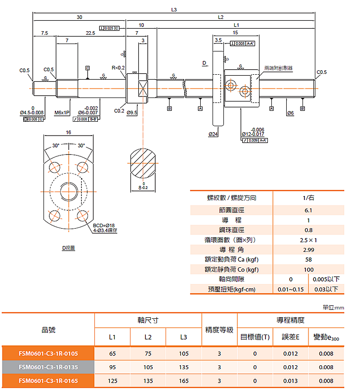 優(yōu)勢(shì)特點(diǎn):PMI滾珠絲桿FSMC系列特點(diǎn):1.省動(dòng)力 2.無(wú)間隙、高剛性 3.高速進(jìn)給 4.微進(jìn)給可能 5.保證高精度。