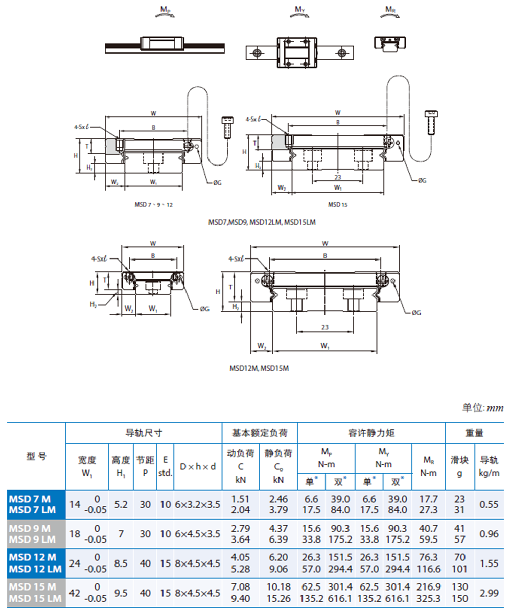 銀泰線性滑軌MSD7LM特點: